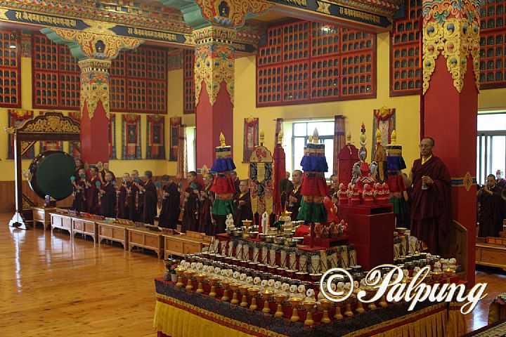 From June 25, 2022, the nunnery's khenpo and vajra master, the monastic seat’s chief chanting master, and the entire nuns' community performed the seven-day drubchö ritual in accordance with the pith instruction and ritual procedures of the visual transmission lineage based on the mandala of the glorious Hevajra, Lord Marpa's main yidam deity, at Palpung Yeshi Rabgyeling Nunnery.