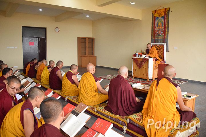 At the request of Palpung Sherabling Monastic College, Drikung Khenchen Nyima Gyaltsen visited the college, where, since August 19, 2022, he has been bestowing instructions on "Gongchig: The Single Intent," a sacred treatise by Kyobpa Jigten Sumgon, also known as the second Nagarjuna, to a general audience of the college's teachers, along with several scholars who specialized on major philosophical treatises.