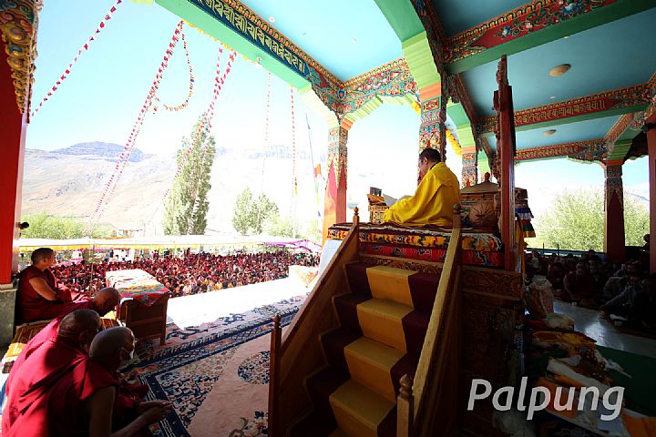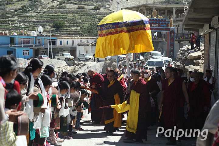On the following day at the Sakya monastery, Guru Vajradhara bestowed a long life empowerment and teachings. On September 1, he gave a teaching to local devotees at Tabo Monastery in Spiti, after which he fulfilled the requests of the villagers of Horling, Sumra, and Shalkar by making stops at these villages, until he concluded his journey by reaching Palpung Ozer Rabgye Ling in Chango.