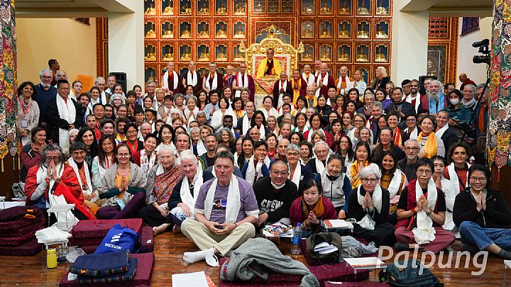 Guru Vajradhara concluded this sacred transmission that benefitted disciples according to their needs with an introduction of how to take refuge, which sets one on the path to liberation, after which he conferred the refuge vows to those who wished to receive them.