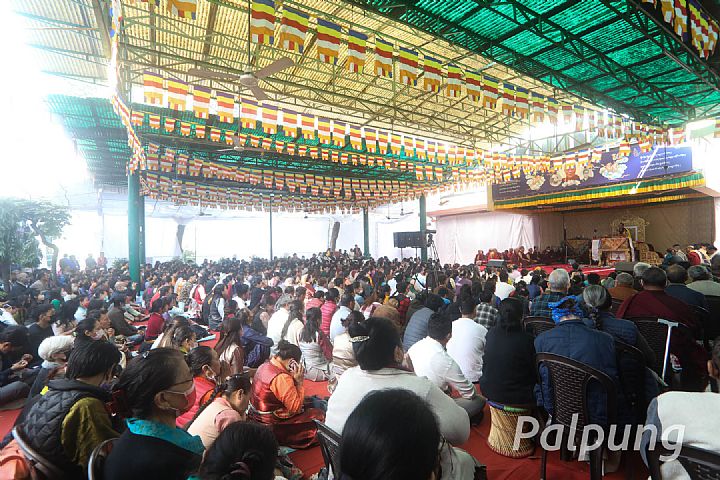 At repeated requests of community leaders and associations from Samyeling Tibetan Colony and devotees from Ladakh Budh Vihar Tibetan Colony in Delhi, on November 18, 2022, Guru Vajradhara His Holiness the 12thChamgon Kenting Tai Situpa bestowed the long life empowerment according to Machik Drubpe Gyalmo's tradition at Samyeling Tibetan Colony's TCV Tibetan School. In front of an audience of local Tibetans from both colonies and other devotees, Guru Vajradhara also gave a profound teaching about the importance of leading a lifestyle favorable to the wellbeing of oneself, one's family, and the entire society, and living harmoniously with each other. He encouraged everyone to preserve the excellent tradition of our forefathers and to observe karma, the law of cause and result. In particular, Guru Vajradhara emphasized the significance of considering all teachings of His Holiness the Dalai Lama as personal instructions, following his advice, and accomplishing his vast intentions.