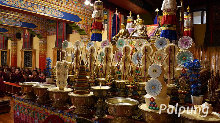 From March 4, 2023, the tenth day of the Month of Miracles during which the highly skilled and boundlessly compassionate Buddha Shakyamuni manifested miracles in order to tame the six tirthika teachers in Shravasti, the tulkus, lamas, khenpos, and the entire monastic community of Palpung Sherabling Monastic Seat are holding a seven-day Monlam, a prayer festival for the thriving of the Dharma of all traditions, long life and flourishing of enlightened activities of its lineage holders, and for the well-being of all living beings in general, especially of the living and deceased connected to our monastic seat. Offerings of over 200,000 butter lamps and recitations of The King of Prayers: The Aspiration for Excellent Conduct and other aspirations are being dedicated for the pacification of sicknesses, wars, famines, and other adversities of the present degenerate time and for the establishment of boundless joy and prosperity.