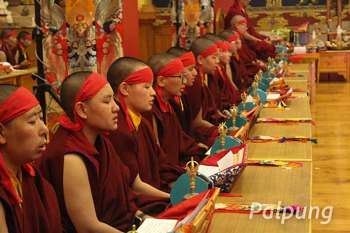 From March 22 to 28, 2023, the nunnery's khenpo, vajra master, chanting masters, discipline master, and the entire nuns' community, performed the second seven-day drubchö ritual based on the mandala of the coemergent mother Vajra Yogini at Palpung Yeshi Rabgyeling Nunnery.