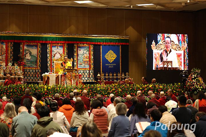 From April 1 to 7, 2023, Guru Vajradhara His Holiness the 12th Chamgon Kenting Tai Situpa, bestowed the fifth of seven years of the transmission of Mahamudra Ocean of Definitive Meaning, essential instructions summarising the profound meaning of the all sutras and tantras to students from all over the world who practice the yoga of Mahamudra. This profound transmission was requested by numerous international disciples and organized by Palpung Institute of Buddhist Studies at Leela Ambience Convention Hotel in Delhi, India.