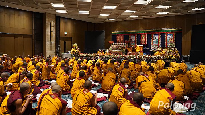 At the repeated requests of Benchen Phuntsok Dargyeling's Shedra, Tergar Osel Ling, and Karma Lekshey Ling monasteries in Nepal, Tergar Rigzin Kacho Dargye Ling Monastery in Bodhgaya, India, and Taklung Osal Chewe Ling Monastery in Bhutan, along with many other disciples from all over the world, on April 9, 2023, Guru Vajradhara His Holiness the 12th Chamgon Kenting Tai Situpa bestowed Getsul (novice) ordination to 127 male and 15 female devotees. The ceremony took place at Leela Ambience Convention Hotel in Delhi. Guru Vajradhara performed the ritual of bestowing Getsul ordination according to the doctrine of Vinaya in the manner of being both ordaining preceptor and ceremonial master, assisted by an assembly of the required number of monks serving as the interviewer, assistant preceptor and so forth.