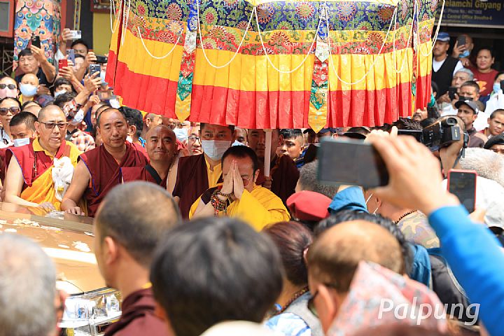 Due to Kyabje Khenchen Thrangu Rinpoche's serious health condition, on May 12, 2023, Guru Vajradhara His Holiness the 12th Chamgon Kenting Tai Situpa travelled to Kathmandu, Nepal. Upon his arrival, he was escorted by members of the airport management and joyfully welcomed by an elaborate reception headed by Kyabje Tenga Rinpoche and Kyabje Tsoknyi Rinpoche, which included numerous tulkus, khenpos, and staff of Karma Kagyu monasteries, several representatives of local charitable associations, and hundreds of monastic and lay devotees. Following that, he was accompanied to his residence at the Soaltee Hotel.