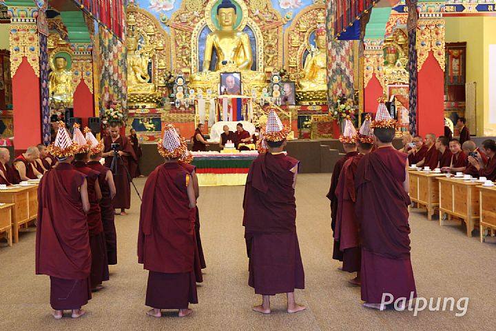 On July 6 2023, Tulkus, Khenpos, Lamas and the entire monastic community gathered in the main shrine hall of Palpung Sherabling Monastic College to celebrate the occasion that marks 88 years since the wondrous birth in this world of His Holiness the 14th Dalai Lama, supreme spiritual friend of all sentient beings, lord of all Buddha's teachings on this Earth, great leader of world peace, and secular and spiritual crown ornament of the Land of Snow.