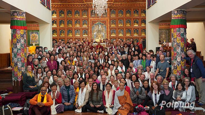 From November 12 to 16, 2023, His Eminence YongeyMingyur Rinpoche concluded the fifth and final year of the transmission of "The Words of My Perfect Teacher." Dharma students traveled from all corners of the world to Palpung Sherabling Monastic Seat to attend this transmission, which was requested and organized by the Palpung Institute of Buddhist Studies.