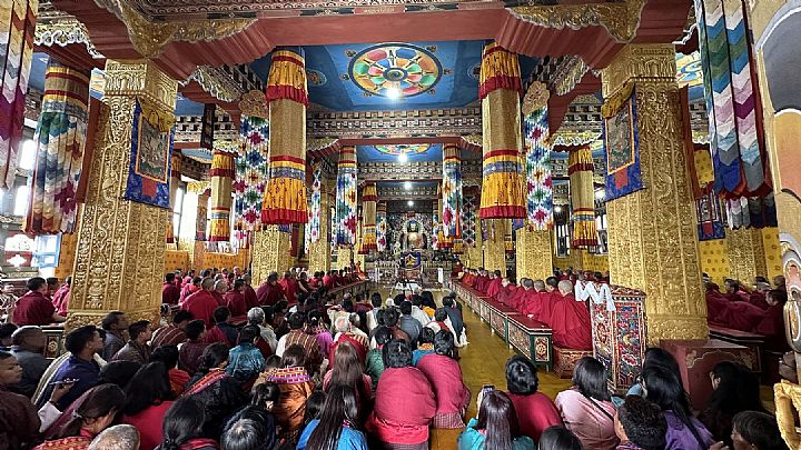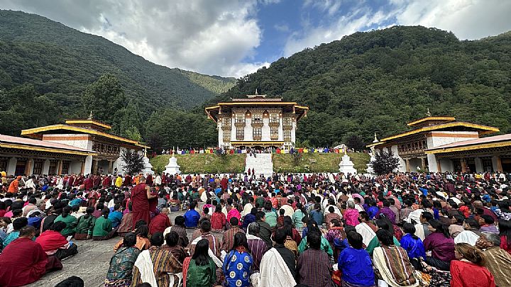 On August 21, Guru Vajradhara embarked on a pilgrimage to Punakha Dzong and Sangchhen Dorji Lhuendrup Nunnery. The next day, he visited Kuenga Rabten Nunnery in Trongsa, where he imparted profound teachings and bestowed a protective blessing upon all in attendance.