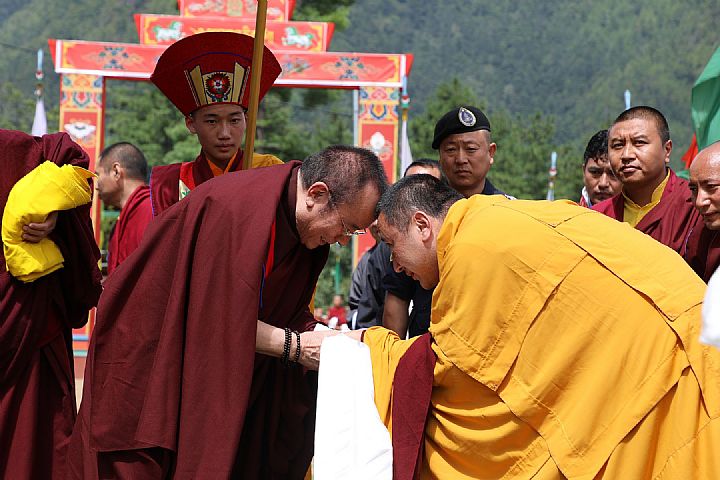 On September 13, Guru Vajradhara embarked on pilgrimages to several monasteries and sacred sites in Paro. The day after, he had an audience with His Holiness Je Khenpo Trulku Jigme Choeda, the spiritual head of the Kingdom of Bhutan, at Tashichho Dzong. Following the audience, Zhung Dratshang (The Central Monastic Body of Bhutan) offered a mandala to Guru Vajradhara.