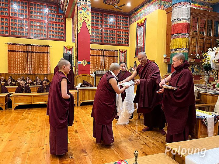 On January 5, 2024, the ceremony to announce the annual ritual examination results of Palpung Yeshi Rabgyeling Nunnery was held at the main shrine hall of the Nunnery.
