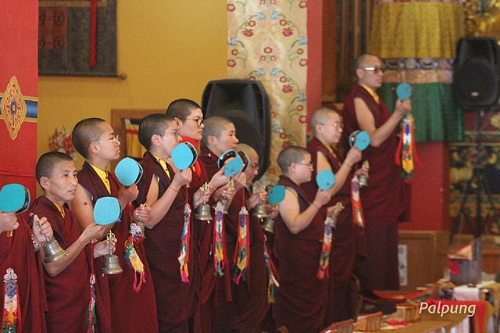 From March 15 to 21, 2024, a one-week Chakrasamvara drubchö ritual based on the Oral Transmission of the Dakinis was conducted at Palpung Yeshi Rabgyeling Nunnery. This offering ritual is a mother tantra that was bestowed by the mahapandita Naropa to Lord Marpa Lotsawa, who transmitted it as a single lineage to his heart disciple Milarepa, and after that it has been maintained uninterrupted up to today. After the ceremony of opening the mandala, the nunnery's khenpo, vajra master, and its entire monastic community performed and successfully completed all elements of the Chakrasamvara sadhana.