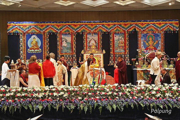 From April 11 to 15, 2024, Guru Vajradhara His Holiness the 12th Chamgon Kenting Tai Situpa conducted the second year of the transmission of "The Ornament of Realization: A Commentary on the Prajnaparamita," one of the five treatises of the tenth bhumi bodhisattva Lord Maitreya, which elucidates the stages of realizing the hidden meaning of the Buddha's second turning of the Dharma wheel. This profound transmission, attended by students from across the globe, had been requested several years prior by several students from Taiwan, and numerous other disciples, and was organized by the Palpung Institute of Buddhist Studies at the Leela Ambience Convention Hotel in Delhi, India.