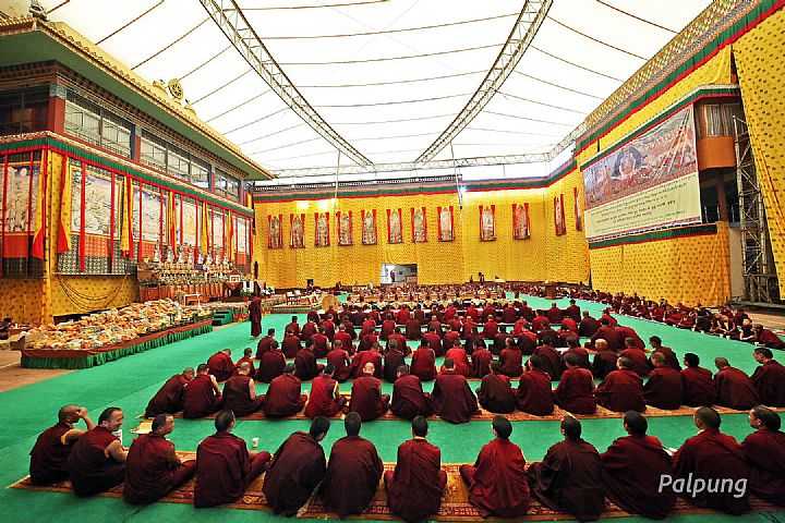 Saga Dawa celebrates three holy events in the life of Lord Buddha, the son of king Shuddodana and the fourth buddha of the fortunate eon - his birth in this world, his enlightenment, and his parinirvana. Traditionally, sacred ceremonies to celebrate the kindness of Buddha Shakyamuni in accordance with three yanas are held each year at Palpung Sherabling Monastic Seat. From May 21 to 23, 2024, a three-day ceremony was conducted at Palpung Sherabling Monastic College to mark the Saga Dawa according to the Kalachakra calendar. The auspicious commemoration of our compassionate Teachers's life and activities began with tulkus, khenpos, lamas, and monastic communities from several departments of the monastic seat performing rituals and prayers according to specific traditions of each of the three yanas, followed by Dharma discourses from the point of view of the Theravada, Mahayana, and Vajrayana traditions about the ground, path, and fruition as well as view, meditation, and action; debates on Buddhist scriptures and reasoning; and presentations of common sciences such as grammar, poetics, medicine, and astrology.